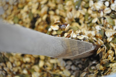 I doubled the recipe, as Hannah suggested – mum and dad, a container of this is coming your way tomorrow! I altered the recipe slightly according to my tastes and what ingredients I had on hand. I added a ¼ cup extra pepitas, ½ an extra teaspoon of cinnamon, and a full cup of chopped figs - just because I love these ingredients so much. I also used vanilla extract as I didn't have any almond extract. Next time I must remember to buy some, as I would love to try it with the almond flavour.
