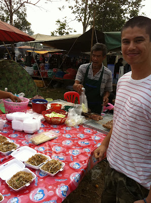 All the locals gather to load up on produce. There are fresh vegetables a plenty, mammoth cabbages and engorged cucumbers take first place. Tiny, potent chillies line every corner, markers reminding you that you are in Thailand, where heat abounds.