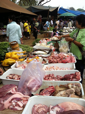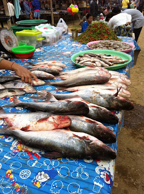 Fresh fish, dried fish, fish paste - they have it all. Along with other meats and bits of carcas, flung upon a board and displayed for the discerning market go-er.