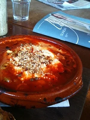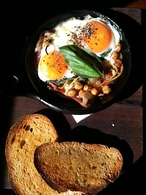 Ben and I decided to share New York Tomato's popular baked eggs, as well as their claypot of chickpeas.