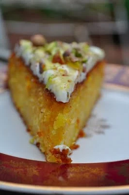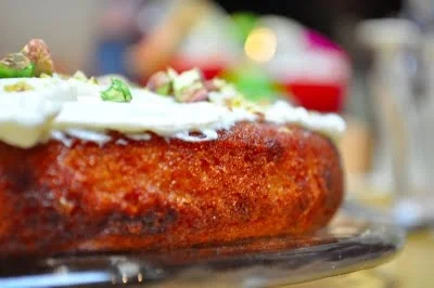 After lunch, mum served cake. Delia Smith's Greek Orange and Honey Syrup Cake with Yoghurt and Pistachios (recipe link here).