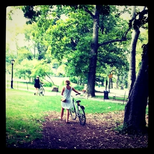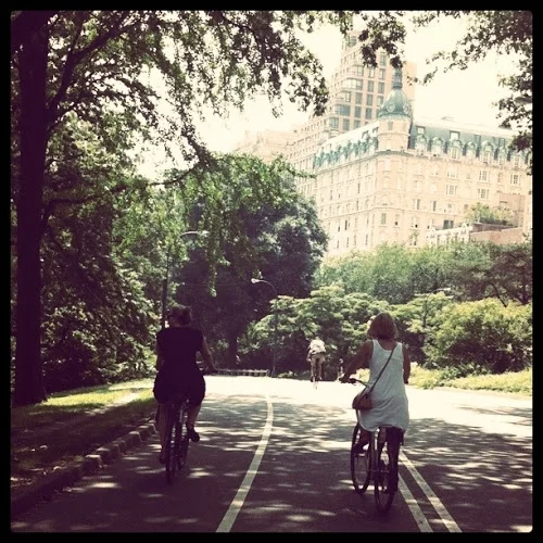 On Monday Vicki, Peta and I hired bicycles and cycled around Central Park. It was most definitely one of my most favorite activities I have ever done...ever. The sun was high and affectionate, the park was uber green and lush, there were kids playing baseball and families out strolling, and as we cycled to Motown tunes and a little old school Elton John, I found my happy place... my NYC coated dream-land. It doesn't take much to get there when you're in this city.