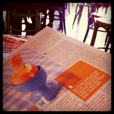 Coffee and the papers... as always, a pleasure. Especially when reading about the psychology behind comfort food, as I tuck into some brioche - true comfort food, realised on my plate.