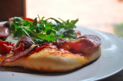 Early Sunday morning Ben and I made Dad breakfast (well, it was around 8:30am...that's early for a Sunday, right?). Our little creation (born due to leftover pizza dough from the night before) took two attempts - the first was a little wet. I think we need to try a new pizza dough recipe, perhaps. Despite some soggy roadblocks, we got there in the end...Here is our inspired creation (read: experiment) that Dad every so kindly consumed for his Father's Day Breakfast. The Breakfast Pizza...With a tomato passata base, tomatoes, parmesan, marinated white anchovies, an egg from their chickens. Topped with Boks Bacon (the best) and rocket. Yes, it was a little spunky.