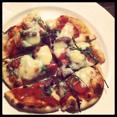 Simple pizza was on the menu - just tomatoes, rocket, olives, manchego (my favourite) and mozzarella.