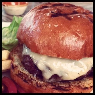 The burger was completely melt-in your mouth, a true quality, super juicy patty cooked perfectly medium-rare. I chose gruyère for my cheese - the options were blue, gruyère or cheddar. And the bun...brioche divinity. Luckily the burger was not huge, as it was a very rich meal. The pickled onions were delicious and the fries were lovely, not too crisp and not soggy. The basil aioli was also gorgeous. Yet I didn't spend much time on the fries and aioli. Let's be honest, it was all about the burger...