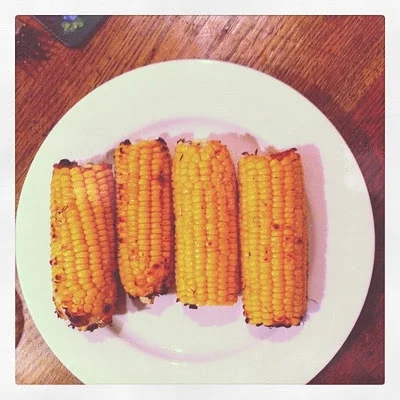 BBQ. Salad with Goats Cheese, Corn on the cob, Mushrooms, Salt and Vinegar Potatoes and Sweet Potatoes, as well as butterflied Lamb.