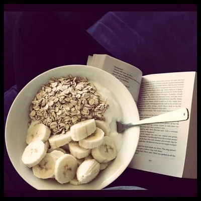 Saturday morning. Yoghurt, Rolled Oats, Banana. The Snowman. George and Alex have both read this book, and so I was keenly exclaiming details to them whenever anything juicy happened. Book obsessions are such fun to share.