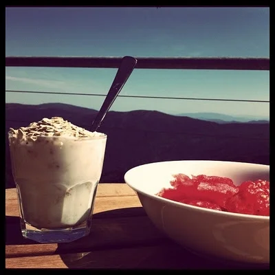 Breakfast on the balcony. Yogurt, Rolled Oats, Watermelon. Never ending watermelon.
