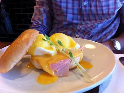 Ben ordered the Eggs Benedict, which he quite enjoyed. He said the hollandaise was very zesty, and the eggs were poached perfectly - love that, so simple yet so important! Plus there was a bagel involved, so yeah, he was happy.