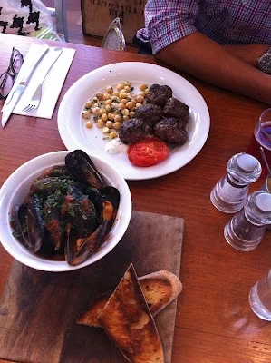 My Mussels were so beautiful, as were the tomatoey base and my hunk of sourdough. Perfection. Only there was no chorizo. And no explanation of my missing chorizo. I was a little devastated, I'll be honest. Unfortunately, we felt that Ben's kofta were under seasoned, a bit bland. But they were still yummy. And my latte was really lovely.