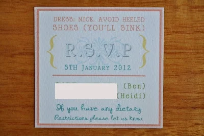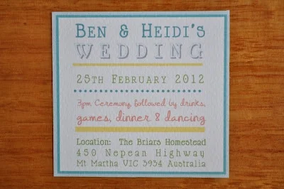 No Wedding pictures yet, I’m afraid. I don't mean to be such a tease, I swear. It's just that I’m still finalising my selection - a difficult task, as I love them all. And as keen as I am to share our Wedding photos with you, I am also bursting to show you our Invitations. So here we go. As I mentioned in my Wedding planning snapshot back in January, we sent out our save the dates fairly early on, at the start of November. We did this for two reasons: to, well, encourage people to save the date, as February and March is a busy time for Weddings, and also in anticipation of our true invitations being handed out around Christmas time (only two months away from the big day). You see, we knew they’d be a little…large, and hence it would be more cost friendly to hand them out personally rather than post them. During the festive season there were countless catch ups and opportunities to distribute our little packages. Plus it was really fun to see people open them in person, each reaction making me more and more excited for the big day.