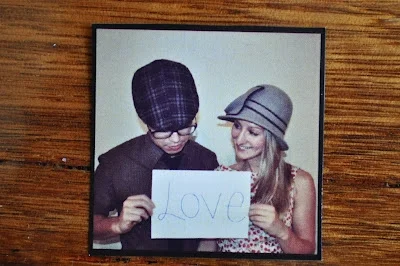 To go with these cards we decided to go to a photobooth and take some cute pictures. However when we arrived at the location where we used to go as teenagers to get these pics, the photobooth was gone. So instead we went home, set up our tripod, put the timer on and snapped away ourselves. I then put an instagram filter on our pics, selected our favourites and went to Officeworks to print them off. Voilà! Cutting them out individually, with the help of many hands and a guillotine, was probably the most tedious task, but it was all part of the fun. They were a fantastic, sharp image too, not slightly blurry like the pictures below might suggest. We have some spare and I can't wait to put a couple on the refrigerator. Or even enlarge them. I'm particularly fond of the last shot.
