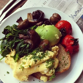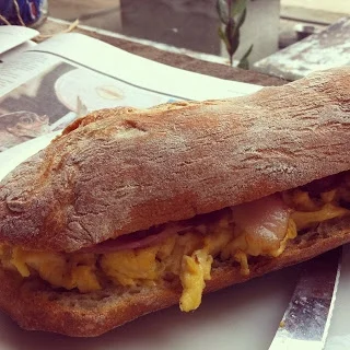 We shared scrambled eggs with loads of veggie goodness and an egg and bacon ciabatta. Plus lovely lattes.