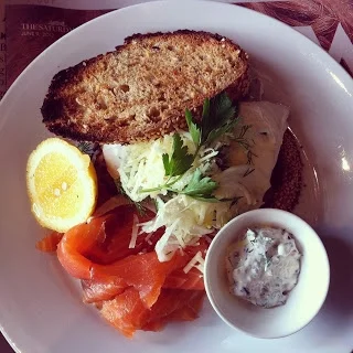 Gravlax, poached eggs, fennel and parmesan salad.