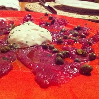 Venison carpaccio with capers and horseradish cream (made using my parent's homegrown horseradish).