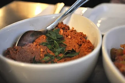 The toasted pita was warm and addictive. The tzatziki was thick and full and wonderful and the muhammara (a Turkish hot pepper dip) was really lovely - much drier and chunkier than others we tried. Appetiser deliciousness.