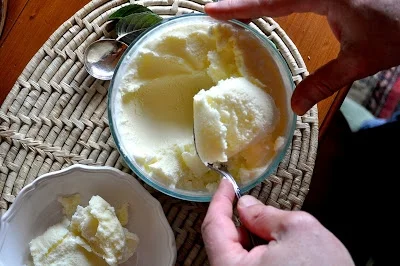 Dad's creations are ever-welcome. Especially this chartreuse ice-cream (recipe link).