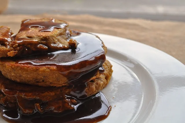 So here we go....today I'm giving you the choice of pumpkin spice wholemeal quinoa pancakes with a maple pecan crumble....or if you are so inclined, you can have your pumpkin spice wholemeal quinoa pancakes with a spiced molasses syrup. Whichever way you want to elaborately describe these merry morsels, the choice is yours.