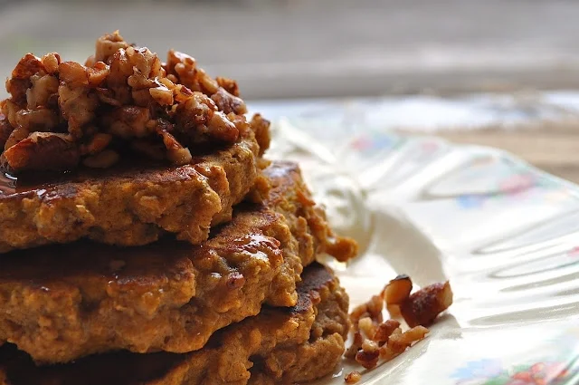 Pumpkin Spice Wholemeal Quinoa Pancakes with Maple Pecan Crumble