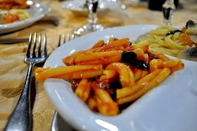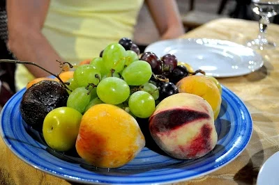 Dinner was at Casale Villa Raino, our bed for the night. Lots of scrumptious small plates, finishing with fresh fruit. Drinking wine and eating outdoors like this after a day of hill-climbing and exploration was oh so lovely. Yes, our visit to Gangi was a true treat.