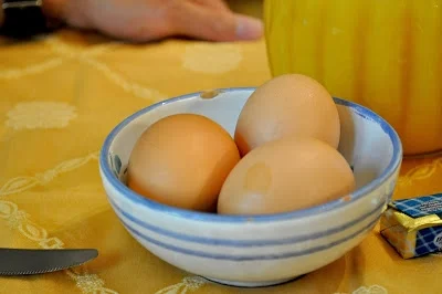 Eggs and bread for breakfast, with more fresh fruit and jams. Aren't boiled eggs in the morning the most heavenly sight?