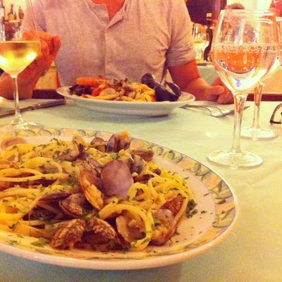 And then dinner at Al Vicoletto, a beautiful little restaurant founded by two young friends. We had seafood pasta and Sicilian-style swordfish (with tomato and capers). This food was really very scrumptious, one of the top plates of my beloved spaghetti alle vongole that we devoured on our trip. With a crisp glass of white wine, I was terribly pleased.