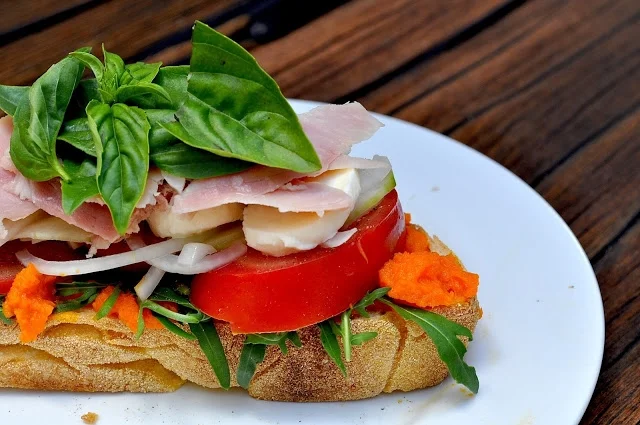 Last weekend, my parents and I loaded up some carrot goodness on fresh sourdough. I then piled on salad goods, pickled cucumber and onion, bocconcini, basil and ham. It was good. Especially with cider.