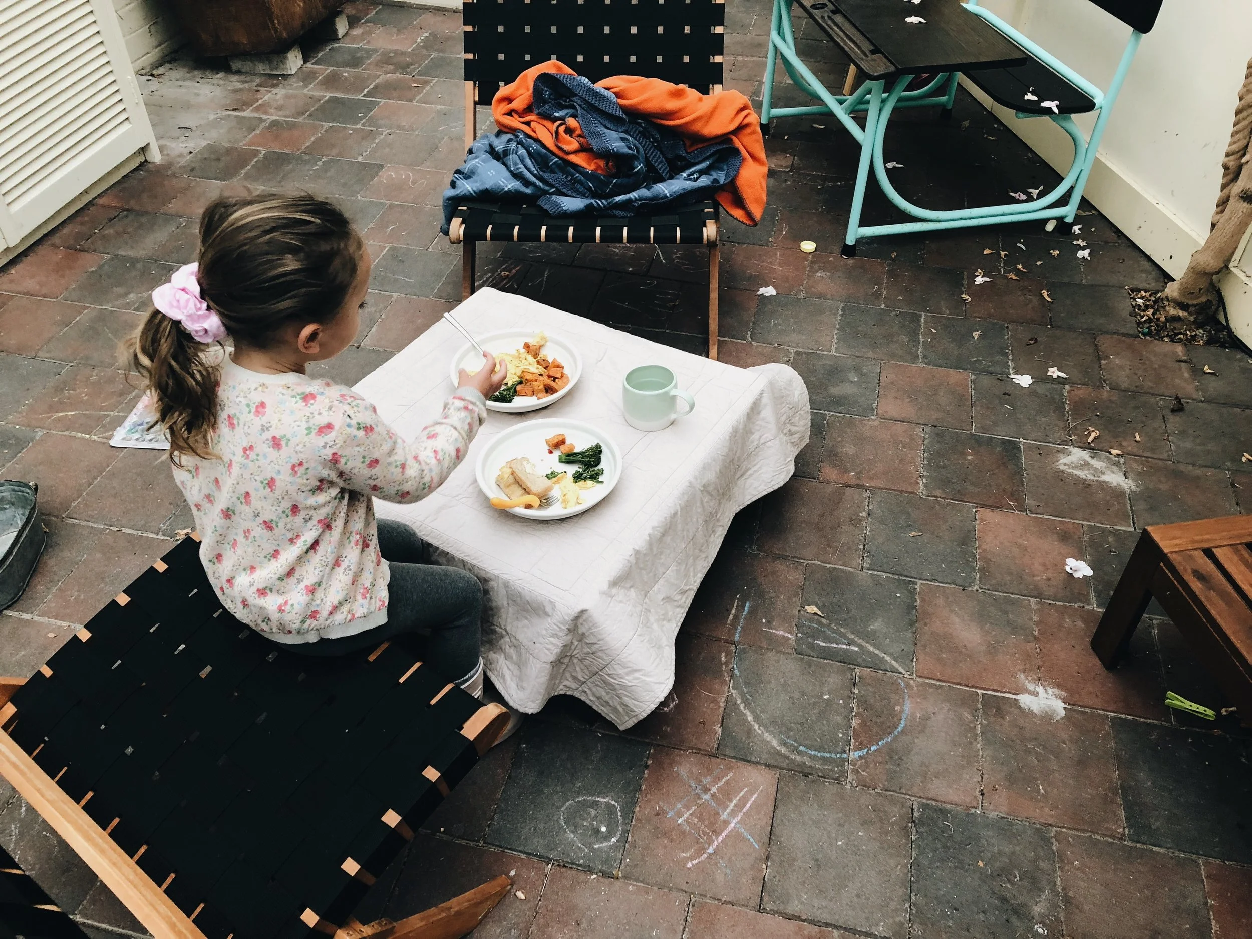 ENJOYING: my nights with Walt. I never thought I’d say this in this season of my life, but I truly look forward to going to bed every night even though I know I’m going to be woken up a bunch of times (i’d say it varies from 3 to 7 times at the moment). Giving myself permission to bed-share (safely) from the get go with Walt has made such a difference to my wellbeing. It just works for us. I’ve also been enjoying my one-on-one time with Joan. We get decent time together when Walt naps, but because he’s mostly napping in the carrier or sling he’s always between us, so to speak. So, when Ben is home, I make time for just us two. We went to the arts centre the other week to see a kid-friendly ballet (seeing her face light up when I surprised her as everything) but mostly we do small dates at home, like our breakfast date below. Just the two of us sitting and chatting outside with blankets, eggs and hot drinks (coffee for me, chocolate for her).