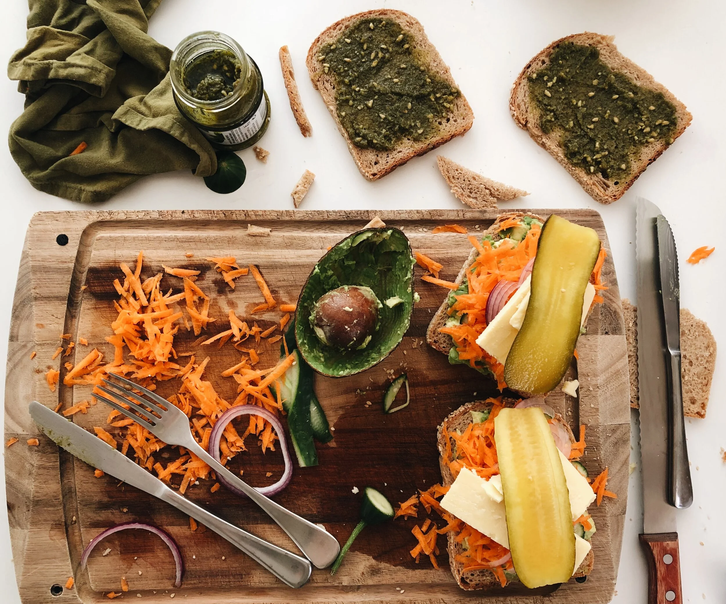 LUNCH: lunch is perhaps a bowl of veggies and quinoa, using fresh and/or roasted veggies, plus either legumes, eggs or tinned fish. I rely on meal prep to have quinoa and veggies pre-prepared. Or it’ll be crackers with hummus or smashed avocado and veggie sticks. We love Mary’s or Dr Kargs crackers. I would like to make my own crackers but for now we just buy up when they’re on sale at our local shops. Walt doesn’t eat the hard crackers just yet, so in their place I give him some soft, canned cannelini beans or black beans. If Ben is working from home we may have salad sandwiches with all the trimmings - pickles, onions, cheese, pesto, etc. And occasionally I’ll cook some scrambled eggs. Mostly, though, it’s a case of opening the fridge, taking things out of containers and assembling them in a bowl/on a plate.
