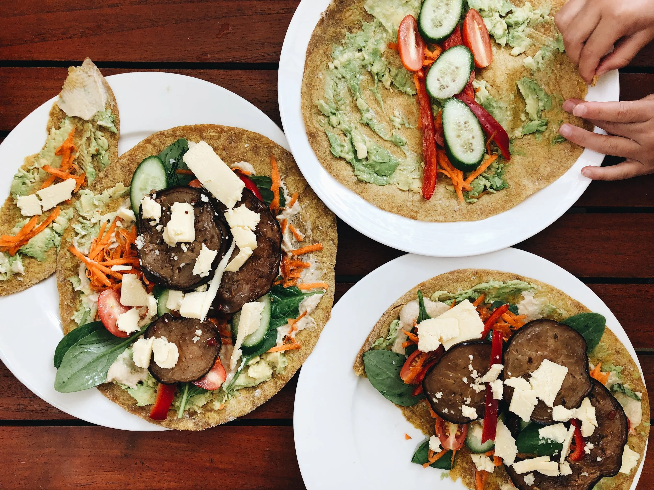 Salad wraps at our apartment for lunch. Marinated eggplant slices are a revelation.